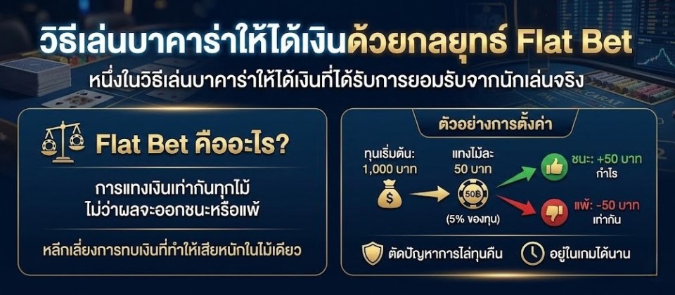 👉 หากคุณกำลังเริ่มต้นเรียนรู้วิธีเล่นบาคาร่าให้ได้เงิน แนะนำให้ทดลอง Flat Bet ด้วยงบเล็กๆก่อน เพื่อสร้างวินัยในการเล่น